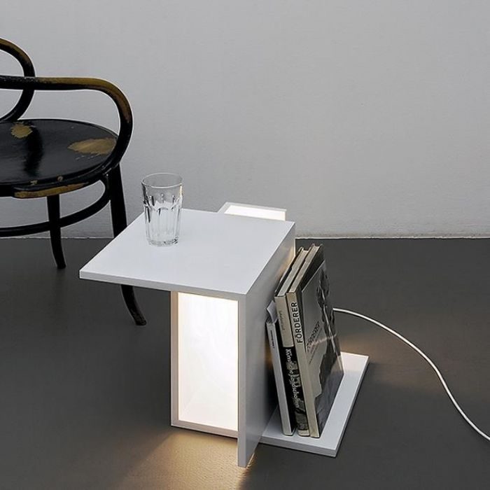 Здорово, когда прикроватная тумба или журнальный столик оснащены подсветкой. Интерьер сразу наполняется приятным свечением, а интерьер становится более привлекательным. К тому же, можно больше не думать о прикроватном светильнике.