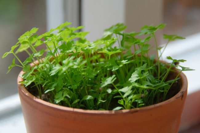 Семена петрушки за сутки перед посевом рекомендуется поместить в емкость с водой. При посеве семена нужно углублять в почву не более чем на 0,5 см и затем присыпать небольшим слоем земли. После этого уберите горшки с рассадой в темное место и поливайте через день. А вот когда рассада зазеленеет, переместите горшки на подоконник, ближе к свету.