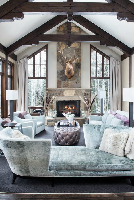 Удивительное сочетание нежно-розового и голубого цвета делает интерьер нежным и жизнерадостным.