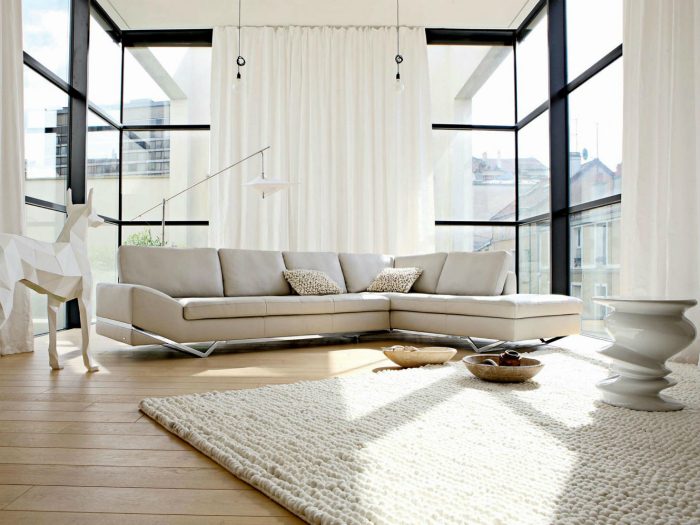 Стильный и сдержанный интерьер гостиной, оформленной в пастельных тонах.