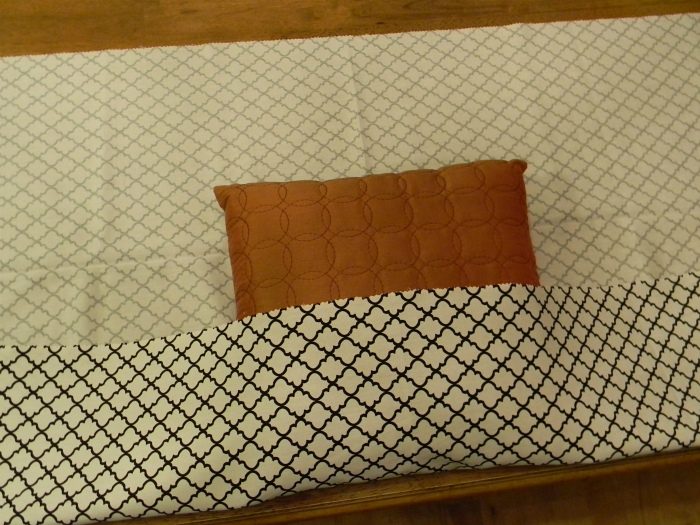 Чтобы сделать оригинальные наволочки для диванных подушек или даже постельного белья, вам понадобится всего лишь отезок ткани, втрое шире самой подушки. И следовать этой простейшей фото-инструкции.Положите подушку по центру на изнаночной стороне ткани и начинайте.