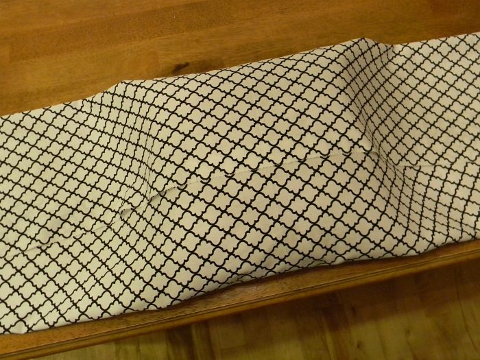 Положите подушку по центру на изнаночной стороне ткани и начинайте.