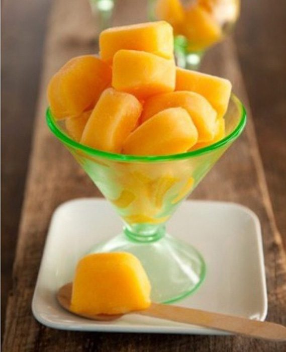 3. Замораживаем взбитое блендером любое ягодное или фруктовое пюре, например, абрикосовое или персиковое. Эти кубики потом украсят любой десерт.