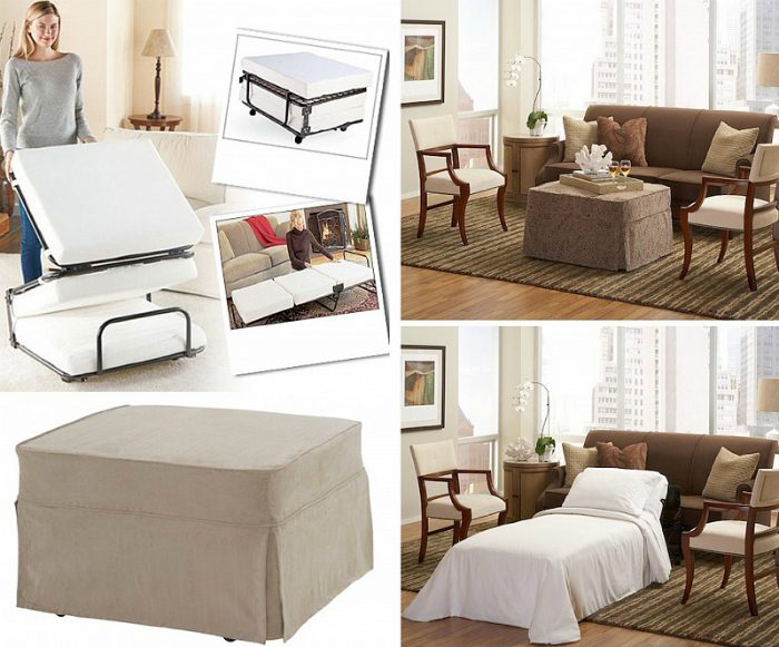 При обустройстве небольшой квартиры, прежде всего, стоит отдавать предпочтения качественной и многофункциональной мебели. Например, такой, как пуф-трансформер. Его можно использовать, как дополнительное место для сидения или столик, а также он раскладывается и превращается в полноценную кровать.