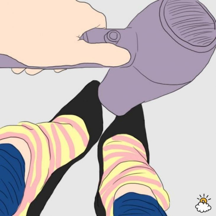 Чтобы туфли стали комфортными и идеально сели на вашу ногу, понадобятся плотные носки и фен. Наденьте носки, туфли, а потом на режиме горячей сушки как следует прогрейте обувь.
