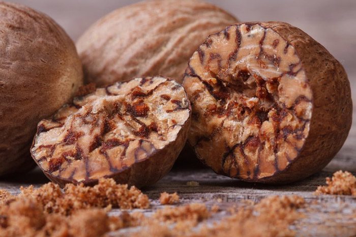 Мускатный орех используется широко, особенно во время приготовления праздничных блюд. Его добавляют как в закуски и первые блюда, так и в десерты для усиления вкуса. Но если перестараться с количеством, то можно заработать наркотическое отравление и впасть в состояние паники. В мускатном орехе содержится химическое вещество миристицин, который по своим действиям похож на экстази и амфитамин. Это сильный галлюциноген с серьезными побочными эффектами. Для состояния опасного для жизни достаточно употребить 5 столовых ложек приправы.