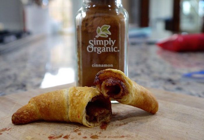 Рогалики с корицей идеально подойдут для завтрака. В небольшой мисочке смешиваем корицу и сахар (1/4 ч. л. корицы и ½ ч. л. сахара). Растапливаем небольшое количество масла и смазываем одну из сторон заготовки для рогалика. Посыпаем сверху смесью корицы и сахара и формируем рогалик. Выпекаем при температуре 180 градусов до золотистого цвета.