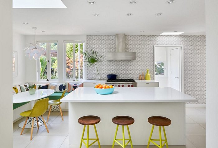 Творческое добавление плитки на стены этой кухни — креативное и отличное решение.