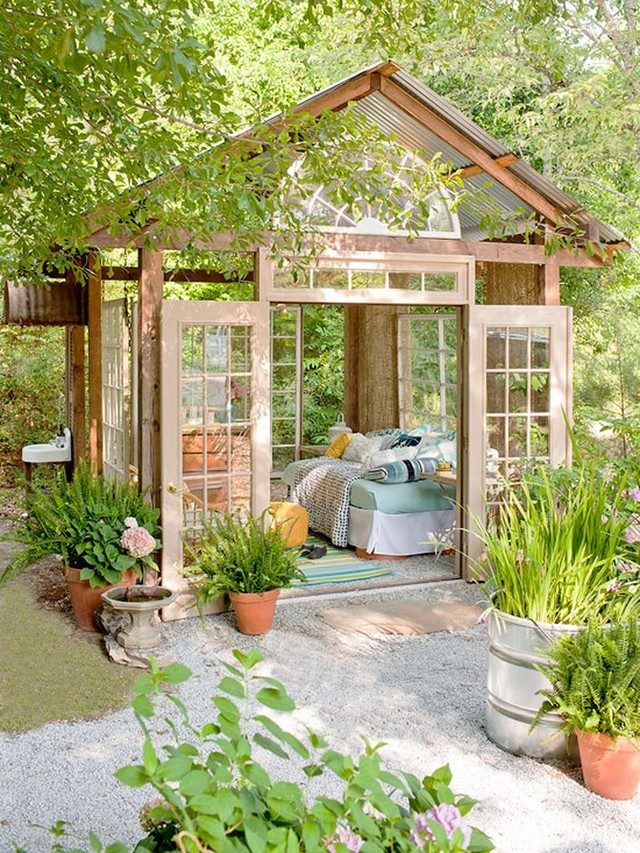Ниже представлены компактные жилые постройки, являющиеся женской версией «мужских пещер». Как правило, они расположены во дворе дома и занимают совсем немного места.