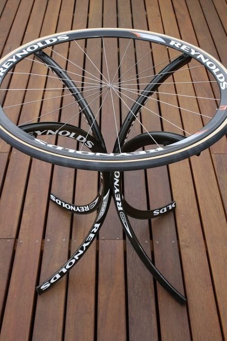 Креативное решение — журнальный столик из велосипедных колес.