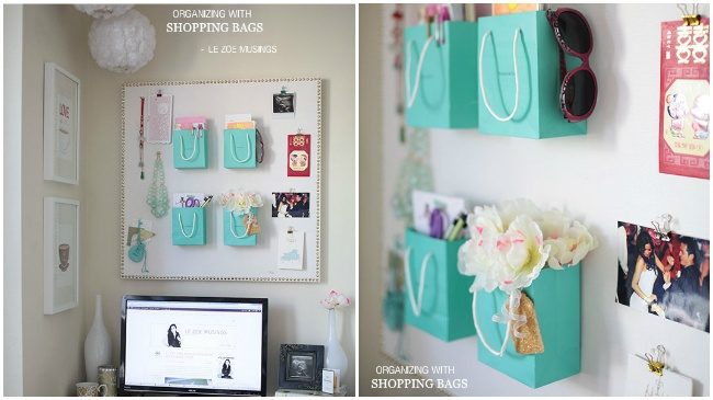 Плотные бумажные пакеты пастельных цветов — просто находка для тех, кто хочет разгрузить рабочий стол. Прикрепленные на стену, они смотрятся необыкновенно нежно! Пошаговая инструкция здесь.