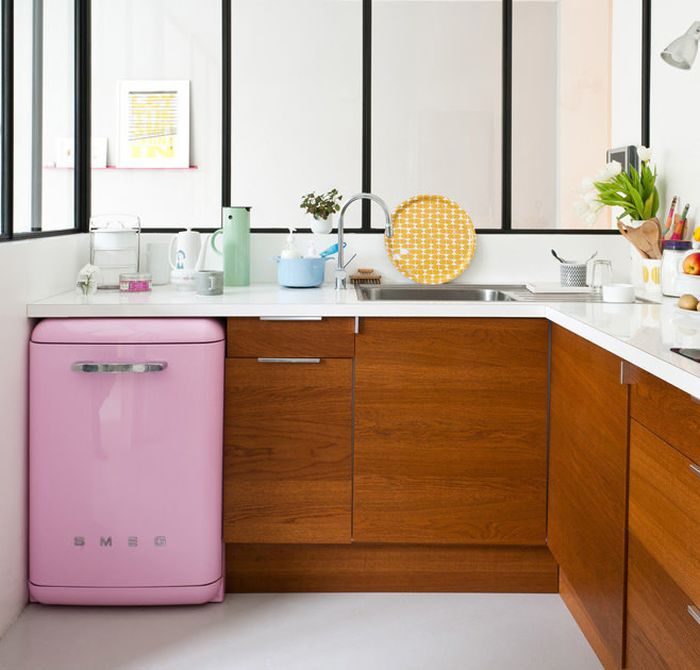 Владельцам маленьких кухонь также стоит присмотреться к холодильникам меньшего размера. Пускай это будет маленький холодильник, но он займёт совсем немного места и органично впишется в интерьер кухни.