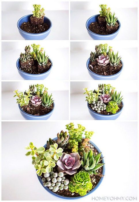 8. Вместо букета цветов, который быстро завянет, пересадите в один горшок несколько симпатичных суккулентов. Они будут радовать взгляд годами.