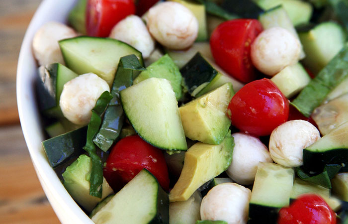 Салат из огурца, помидора и авокадо