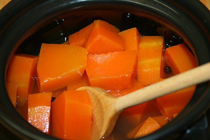 Когда речь идёт о консервированной тыкве, имеется в виду не готовая начинка для пирогов с высоким содержанием сахара, а консервированная мякоть тыквы с низким содержанием калорий и жира. В ней немного воды по сравнению с сырой, много полезных веществ, включая 500% суточной дозы витамина А, железо и 10% суточной дозы витамин С.