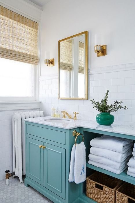 Самый большой плюс бирюзового цвета заключается в том, что он универсален и подходит для оформления любого пространства. И речь даже идёт не о площади помещения, а о назначении комнаты. Бирюзовые акценты будут отлично смотреться в детской, гостиной, прихожей, ванной и на кухне.