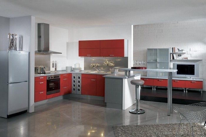 Оказывается, серый не стоит широко использовать на кухне. Если только вы не хотите стабильно отбивать аппетит всем домашним. Ведь оттенки серого – самые «невкусные». Зато их можно смело сочетать с другими, более аппетитными цветами. К примеру, красным.