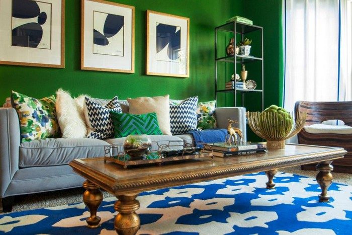 Яркие, сочные оттенки зелёного, синего, жёлтого и оранжевого будут как нельзя уместны в интерьере гостиной, кухни или столовой. Ведь эти цвета заряжают энергией, оптимизмом и, по мнению колористов, даже замкнутых интровертов располагают к общению. А вот использовать их для окраски стен спальни не рекомендуется. Лучше ограничиться отдельными элементами мебели или декора оттенков-энергетиков.