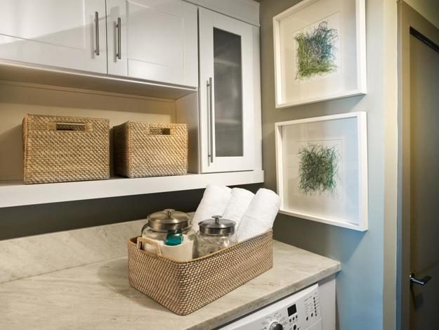 Порошки, пятновыводители, ополаскиватели и прочие чудеса современной бытовой промышленности нужно где-то хранить. Выбирайте оптимальный и удобный вариант, обзаведитесь стильными корзинами или коробками, систематизируйте все необходимое для ухода за одеждой.