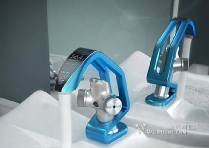 Водопроводный кран необычной формы с сенсорной панелью управления от студии дизайна Стефана Оллино.