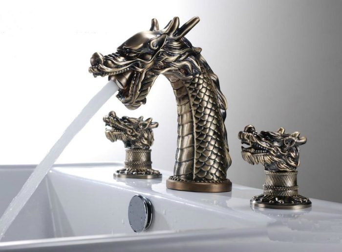 Оригинальный смеситель в виде дракона.