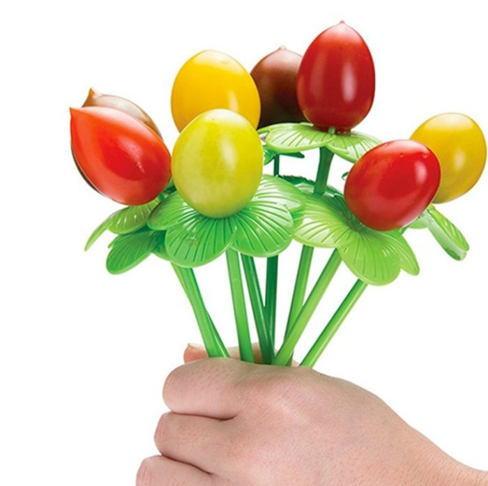 Милые шпажки в виде цветов для канапе, которые станут оригинальным украшением праздничного стола.