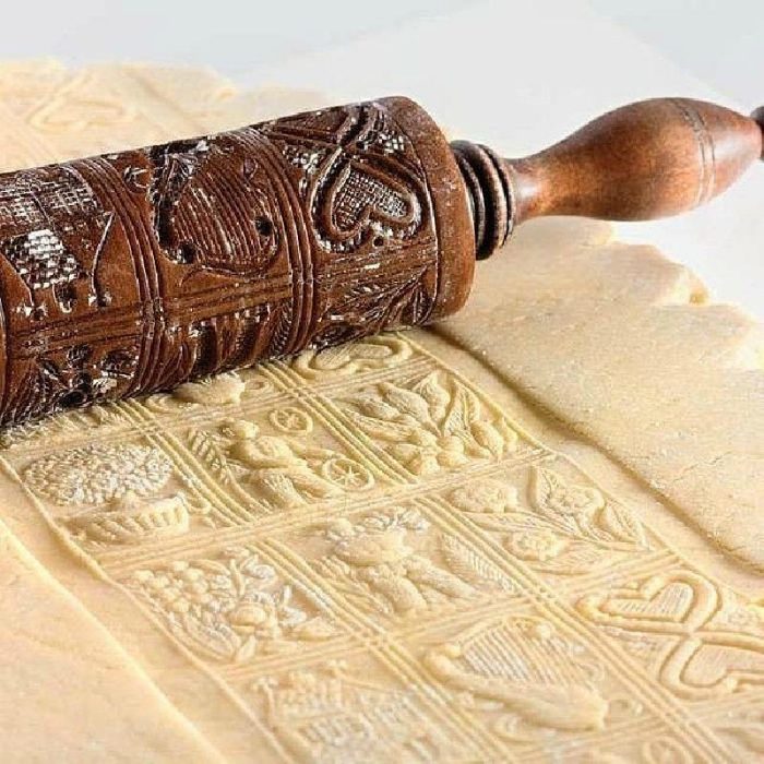 Скалка, которая позволит украсить тесто красивыми объемными узорами. А домашнее печенье, пироги и пряники с красивыми рельефными картинками покорят сердца гостей и домочадцев.