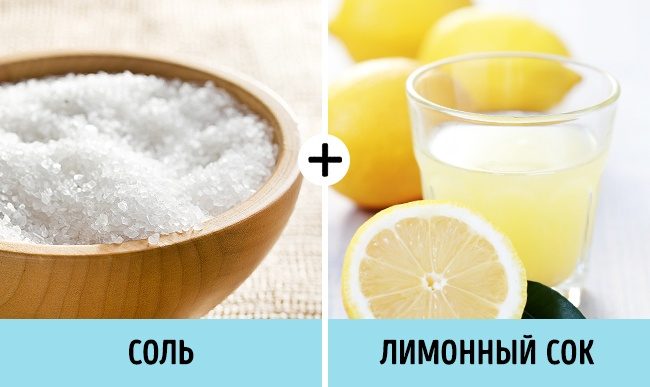 Избавиться от ржавчины куда проще, чем нам казалось раньше. Нужно высыпать поваренную соль на ржавчину, а затем полить сверху лимонным соком. Лимонный сок растворит, а соль впитает ржавчину в себя. Оставьте раствор на ночь, а утром смойте, и вы будете приятно удивлены.