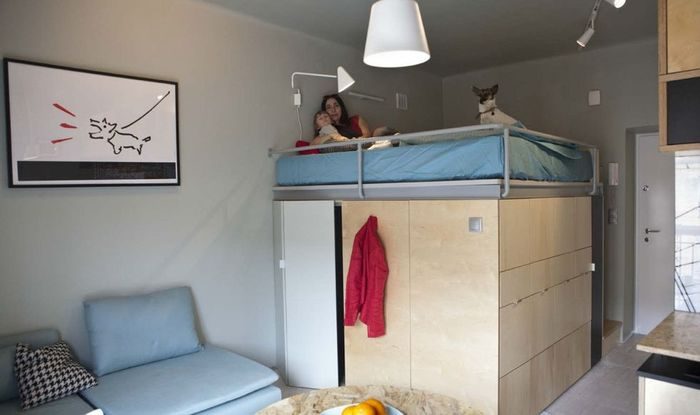 Кажется, что на 22-х квадратных метрах жить невозможно, но небольшая семья из Варшавы доказала обратное. Они чувствуют себя превосходно в своей малогабаритке, всё потому, что им удалось разработать авторские системы хранения и наполнить пространство максимальным количеством практичных предметов.