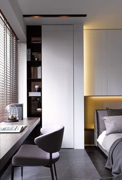 Небольшая спальня с рабочим местом: несколько удачных примеров