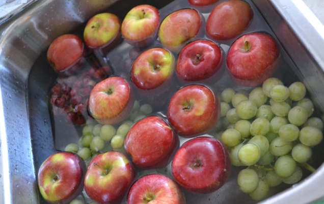 Если вы знаете, что в продуктах очень высокий процент пестицидов — попробовать это:1 стакан воды, 1 столовая ложка пищевой соды, полстакана яблочного уксуса и несколько капель экстракта семян грейпфрута. Позвольте этим ингредиентам настояться в течение одного часа.