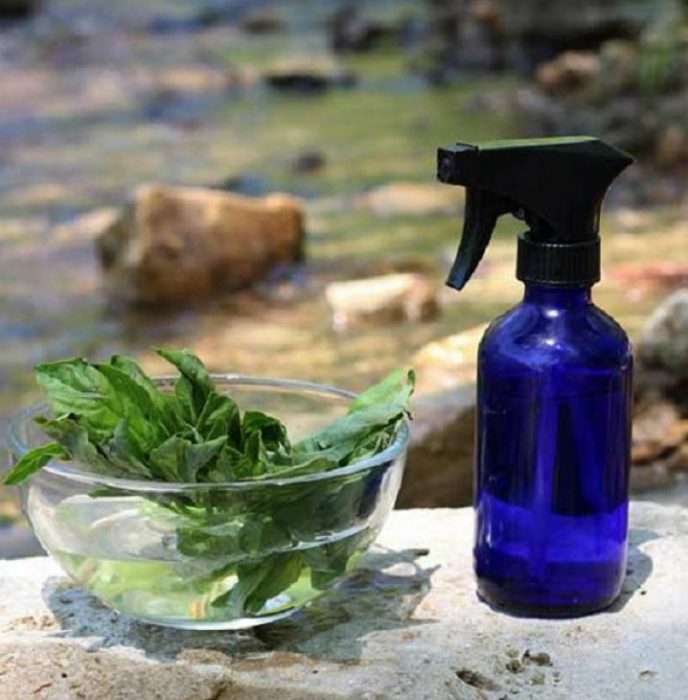Смешайте теплую воду с мелко нарезанными листьями базилика, чтобы получить бюджетное и эффективное средство от насекомых.