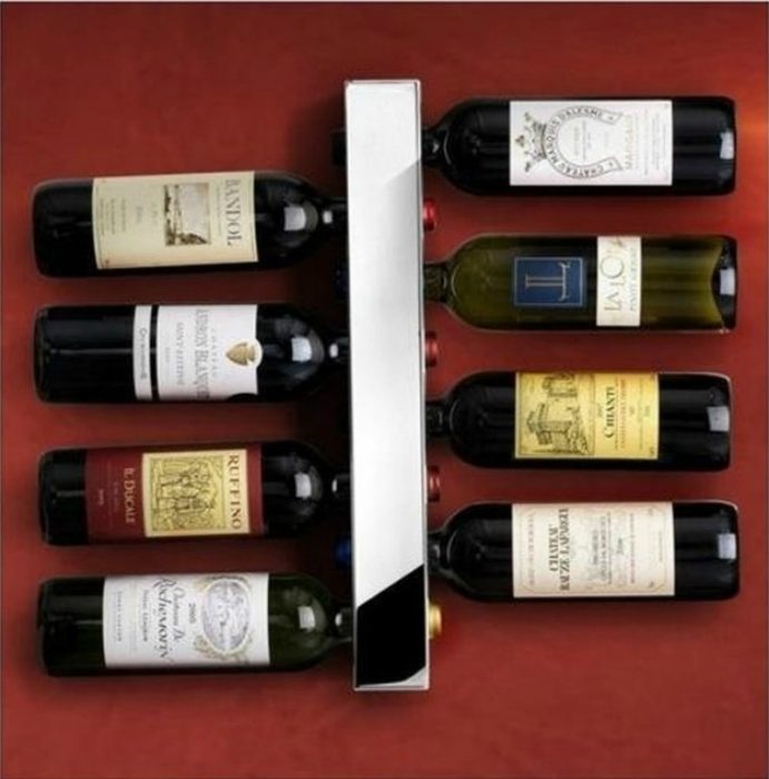 Подвесная винная стойка для вертикального хранения винных бутылок, которая украсит кухню, не занимая много места.