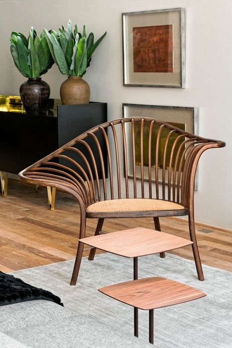 Крутой стул с прямыми линиями, что создают визуальное необыкновенное пространство.