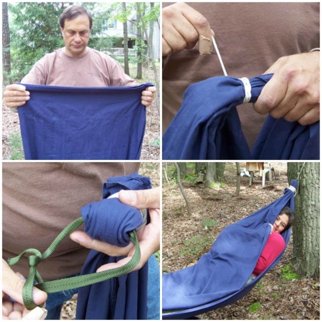 Очень простой и быстрый способ сделать гамак буквально из того, что есть под рукой.