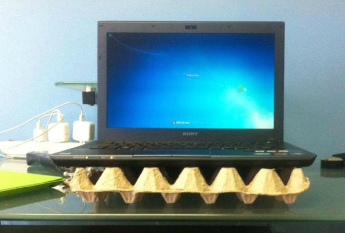 Картонный контейнер для яиц станет замечательной подставкой для ноутбука, которая защитит устройство от перегревания.