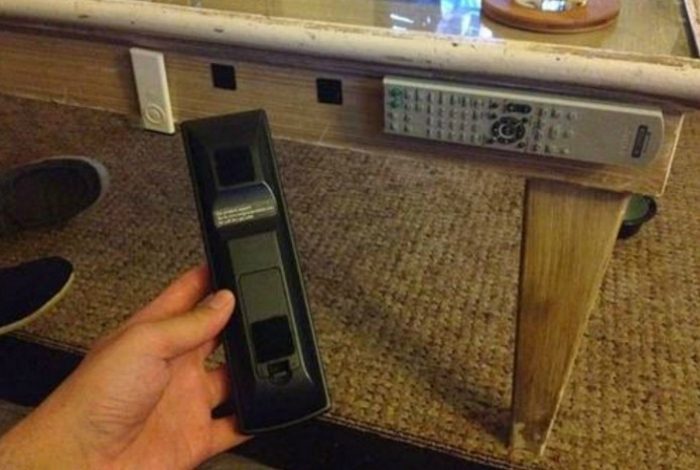 Приклейте к пультам липучки и всегда крепите их к боковой стенке стола, чтобы навсегда забыть об изнурительных поисках нужного устройства.