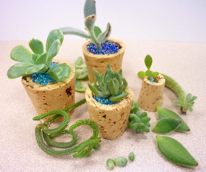 Миниатюрные кашпо из винных пробое могут стать отличной находкой при создании миниатюрного домашнего сада. В любом случае такие нестандартные вазоны для любимых мини-цветков станут креативным и необыкновенным дополнением к любому помещению, комнате.