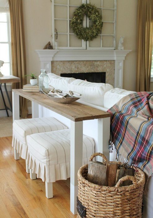 Отличное решение для того чтобы создать уютную обстановку при помощи дивана-стола, что выглядит очень необычно.