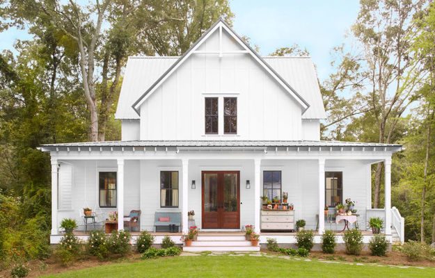 Здесь, в небольшой деревне в Джорджии, живет молодая пара и их двое детей: четырехлетняя дочь и трехлений сын. При этом сложно поверить, что здание – «новодел», настолько оно выглядит традиционным и аутентичным. Секрет в том, что хозяин загородной резиденции строил ее с оглядкой на историческую архитектуру. Рассказываем, какие еще приемы можно «подсмотреть» у владельцев этого светлого домика.