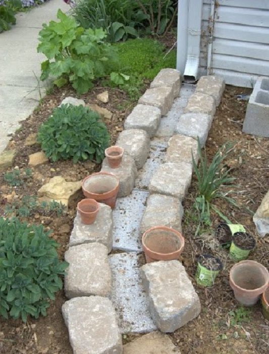 Шлакоблоками возможно выложить простой и красивый слив для воды, то что понравится так уж точно и то, что станет просто отличным вариантом для оформления сада.
