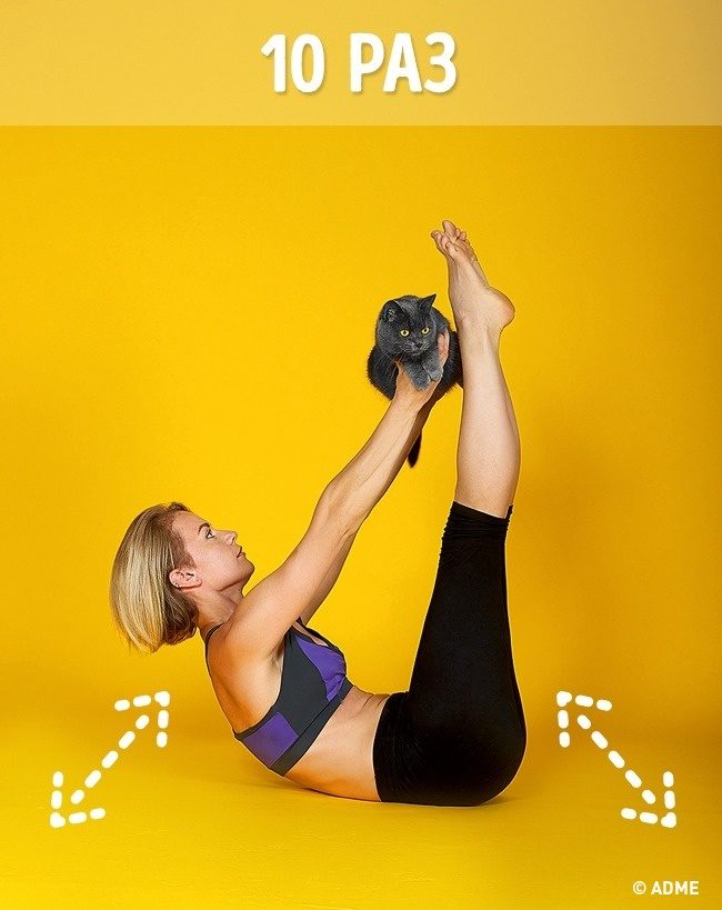 Коты — одни из самых милых, а теперь и самых полезных домашних животных. Они могут помочь вам получить красивую фигуру в том случае, если у вас совсем нет времени на тренажерный зал. Представляю вам котогимнастику.