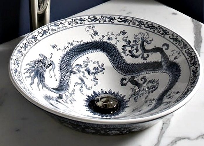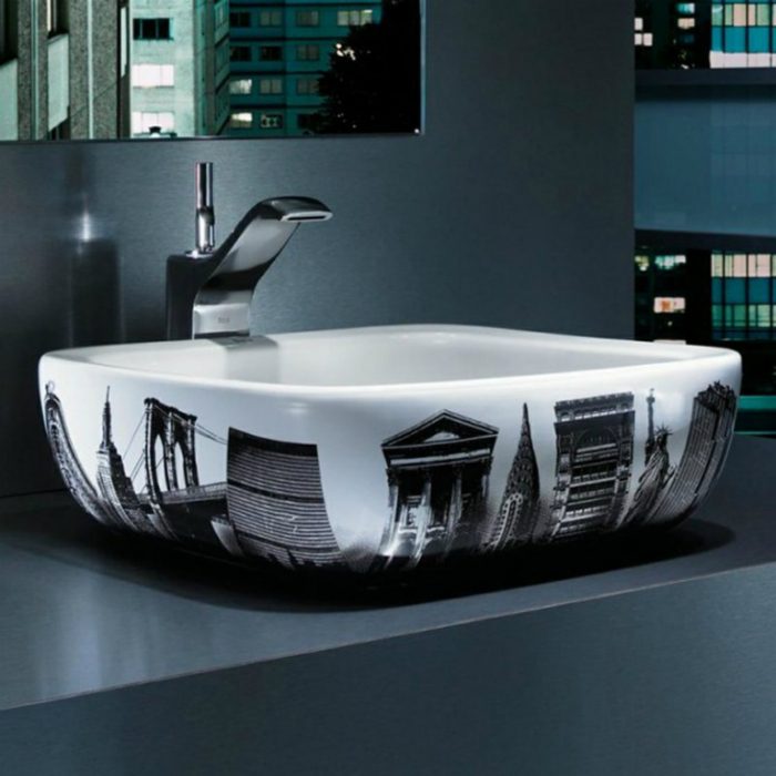 Стильная керамическая раковина-чаша с фотопечатью — то, что нужно для небольшой современной ванны.