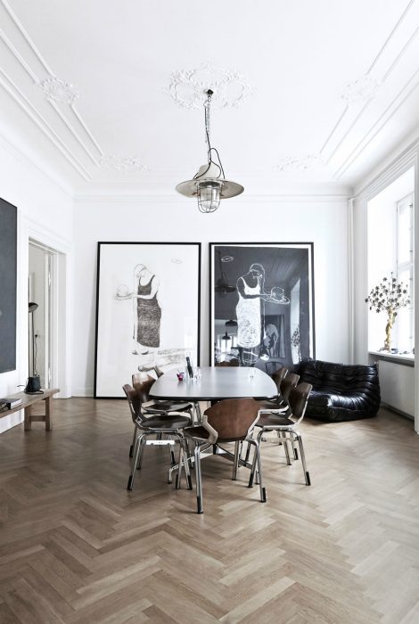 Самый простой способ размещения картин в комнате — поставить их на полу у стены. Для такого декора лучше всего подойдут большие картины в простых однотонных рамах. Такая идея размещения полотен универсальна и подходит как для просторных комнат, так и для маленьких помещений.