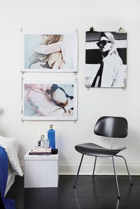 Вместо традиционных рамок для фотографий и плакатов можно использовать биндеры. Такое крепление выглядят просто и стильно, но при этом не отвлекает внимание от изображений.