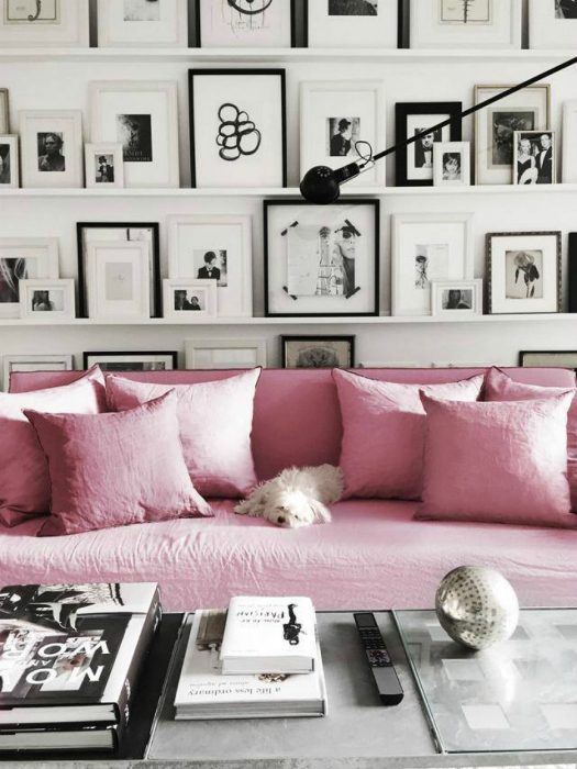 Картины по центру — выглядят довольно просто и банально. Вместо этого, стоит попробовать развесить картины на углу. Такая идея поможет оживить, обычно, глухое пространство комнаты и подчеркнуть объемы помещения.