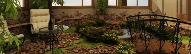 Специалисты рекомендуют классическое внутреннее пространство сада делить на 3 функциональные зоны: декоративную, рекреационную и коммуникативную. Благодаря этому можно вносить дополнительные элементы, например, аквариумы, фонтаны или скульптуры.