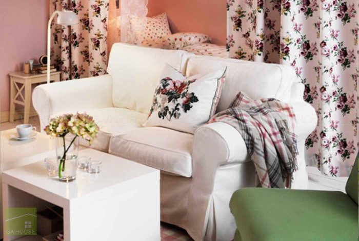 Распространенная ошибка хозяев маленьких квартир в стремлении расставить всю мебель вдоль стен. Такая меблировка выглядит довольно примитивно и к тому же подчеркивает скромные габариты помещения. Различные эксперименты с расстановкой мебели позволят значительно преобразить интерьер и визуально расширить границы пространства.