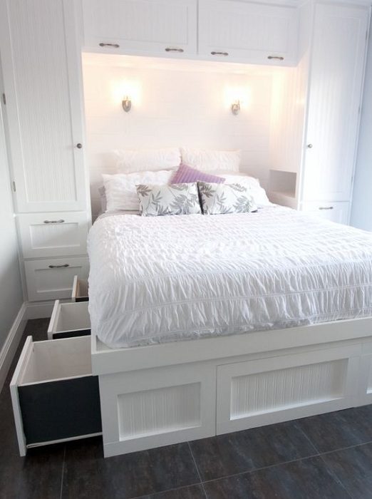 Хороший пример оформления маленьких пространств в спальне, что понравятся.