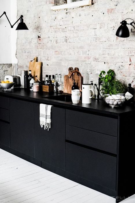 В этом году очень модно использовать в отделке и мебели матовые материалы. Они смотрятся невероятно стильно и эффектно, особенно в современных или скандинавских интерьерах. Для кухни можно использовать белый фон, а мебель покрыть чёрной меловой краской. Получится интересно, на такой поверхности ещё можно будет оставлять друг другу послания или записывать рецепты.